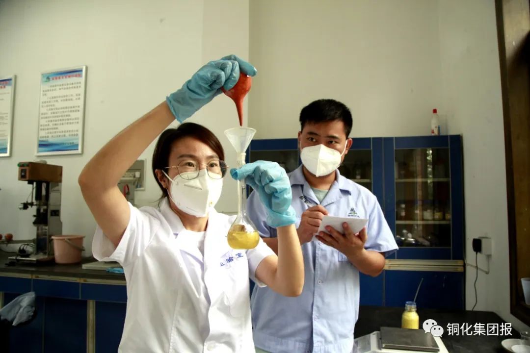 圖為試驗人員正在配制選礦藥劑。