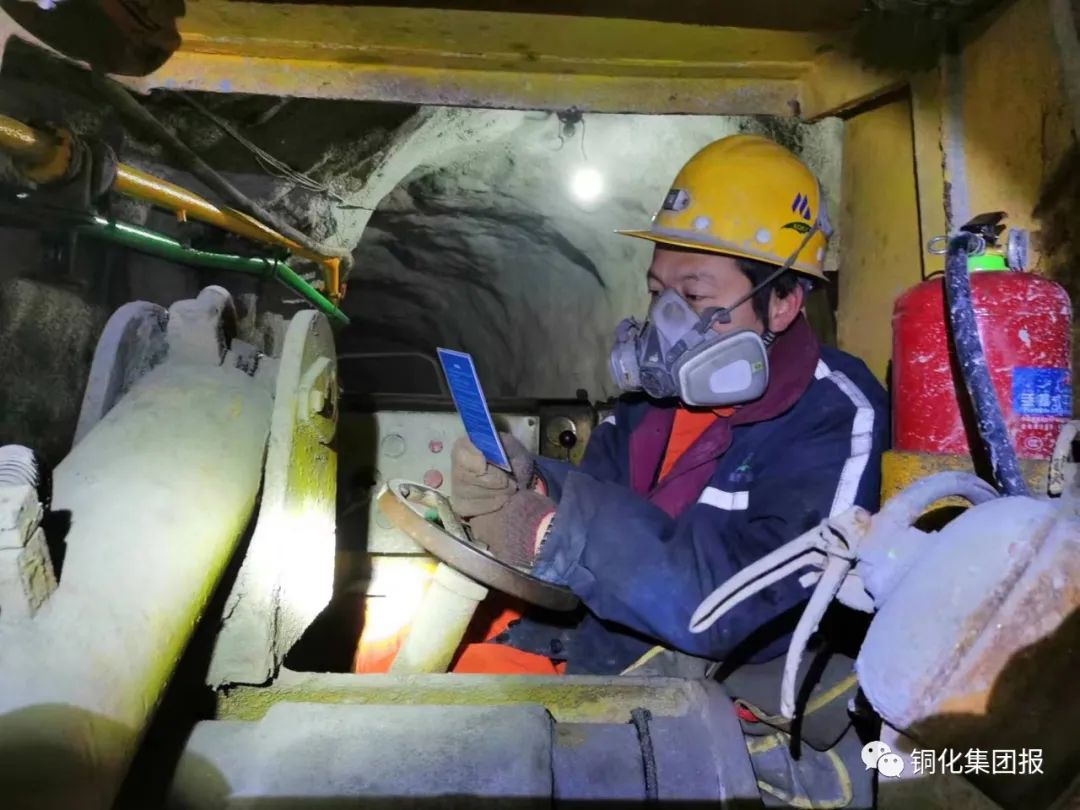下圖:鏟運機司機蔣繼能在作業(yè)前閱讀風險識別卡。