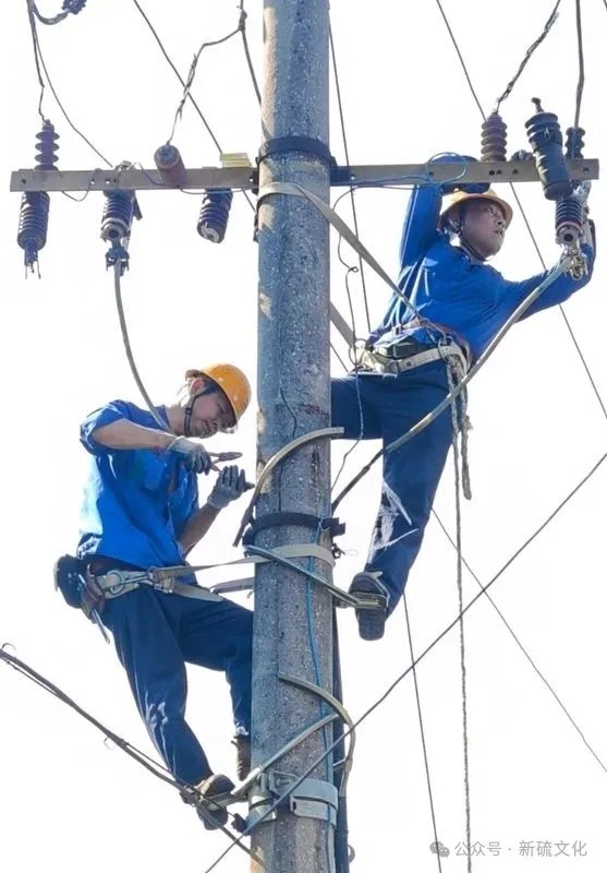 時間一分一秒過去,陽光越來越炙熱,溫度也越來越高。汗水很快浸濕了電桿上聶爾保、曹慶鑫兩名搶修電工的工裝。任憑汗珠不斷順著臉頰和衣衫滴落在地上,他們無暇顧及。兩人在高空中相互配合、快速更換令克,小心翼翼地重接即將熔斷的接頭,桿下安全監管人員凝神屏息全程注視著他們的操作。